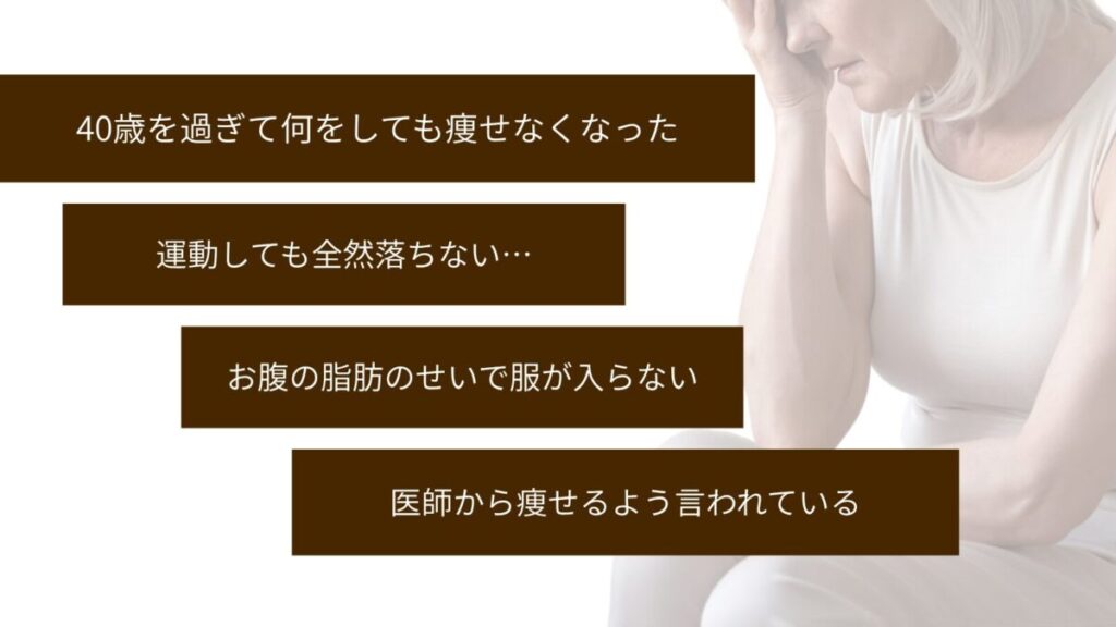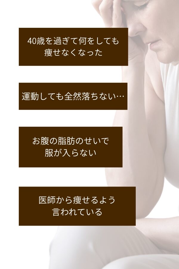 「若い頃とは体が違う…何をしても痩せられない!」そんな40代50代の方が続々ダイエット成功中!創業以来1000名を超すダイエットのサポートを行ってきた信頼と実績の実力サロンです。