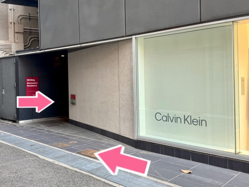 1階がCalvin Kleinさんのビルです。手前を東に進んでください。